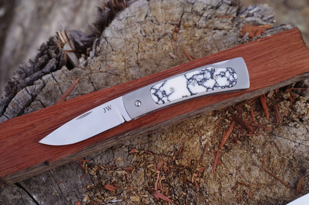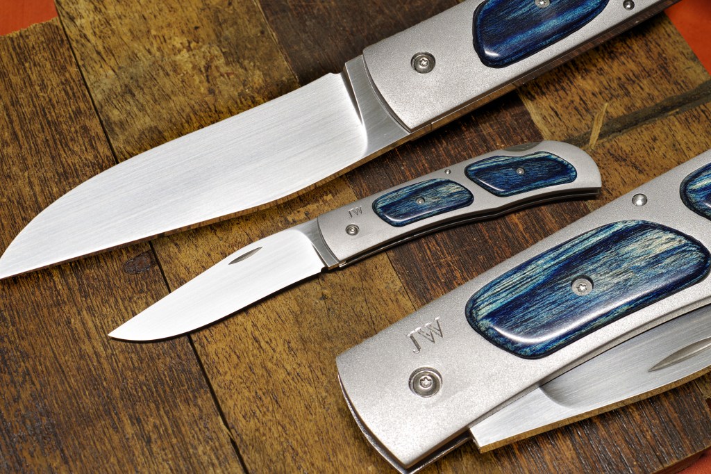 Knives 2021 Half Chef in stabilized Mulberry handle. Matte finished CPM154 blade. Sold French Chef in stabilized Mulberry burl handle. Matte finished CPM154 blade. Sold. ‘Leon’ folder with Cocobolo Dymondwood inlays with raised abalone dots. Mirror polished CPM154 blade. ‘Leon’ folder with Blue Dymondwood inlays with raised mother of pearl dots. Mirror polished CPM154 blade. Sold. Tamgaree Farmer folder with agoya laminate scales. Mirror polished CPM154 blade. 1 sold. Rowley Chef in stabilized Mulberry Burl handle. Matte finished CPM154 blade. Sold Kenny Carver in stabilized Wattle handle. Matte finished CPM154 blade. Interframe Folders with CPM154 blades. Number 2 interframe folder. Mirror polished CPM154 blade, sandblasted 410 stainless steel frame with synthetic white turquoise inlay. Sold. Number 2 interframe folder. Mirror polished CPM154 blade, sandblasted 410 stainless steel frame with raspberry Dymondwood inlay. Sold. Number 2 interframe folder. Matte finished CPM154 blade, sandblasted 410 stainless steel frame with stabilized banksia wood inlay. Sold Number 2 interframe folder. Matte finished CPM154 blade, sandblasted 410 stainless steel frame with stabilized jarrah inlay. Sold. Number 7 interframe folder. Matte finished CPM154 blade, sandblasted 410 stainless steel frame and blue dymondwood inlays. Number 7 interframe folder. Matte finished CPM154 blade, sandblasted 410 stainless steel frame and toxic green kirinite inlays. Sold. Share this: Click to share on X (Opens in new window) X Click to share on Facebook (Opens in new window) Facebook Like Loading...