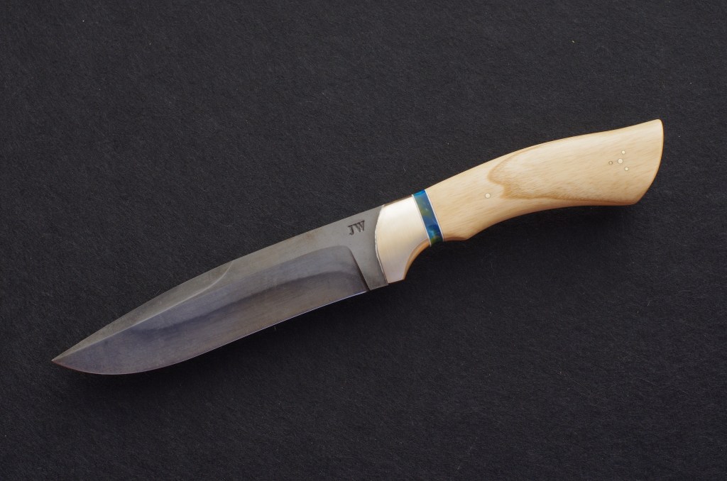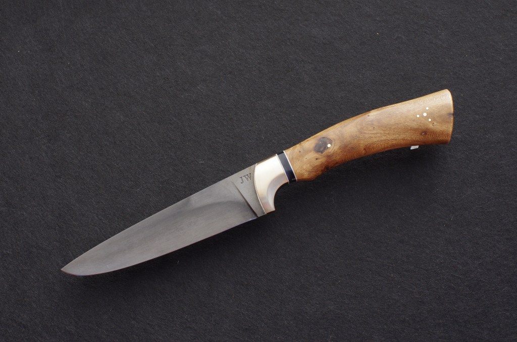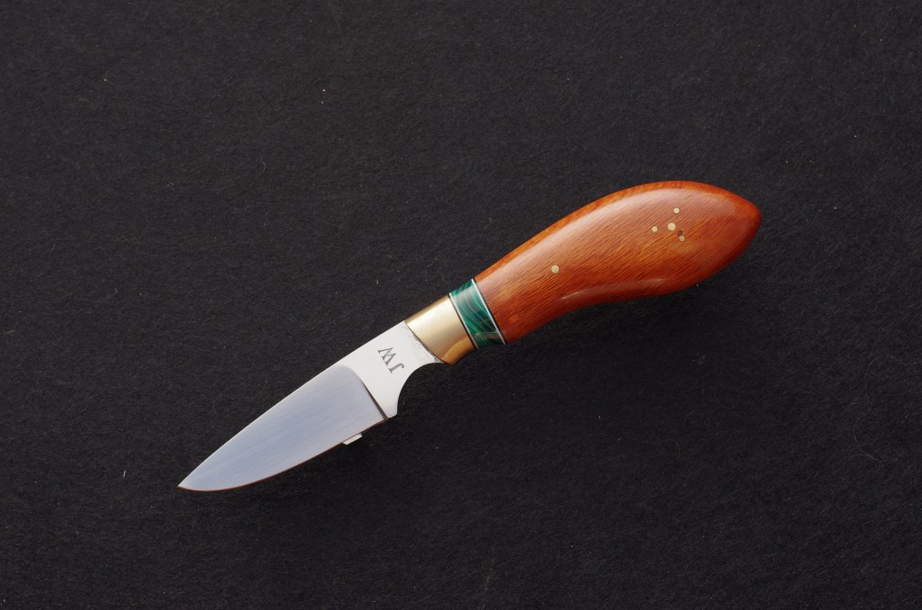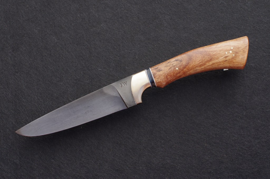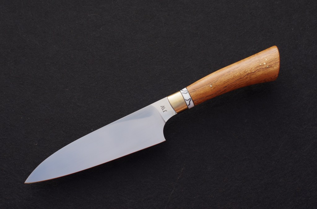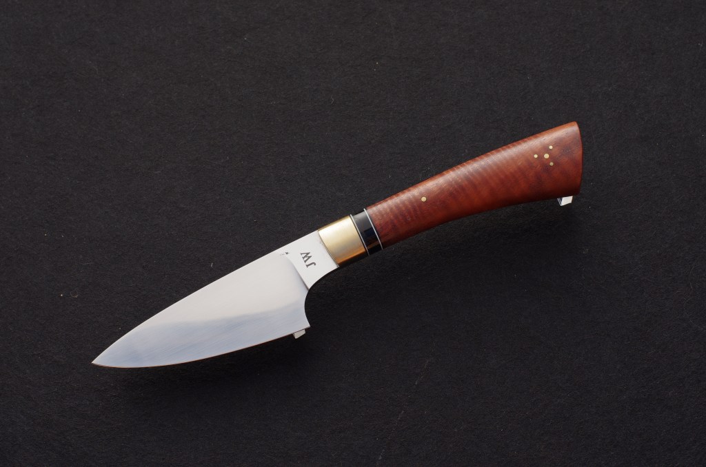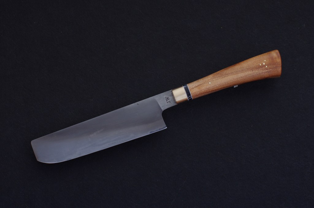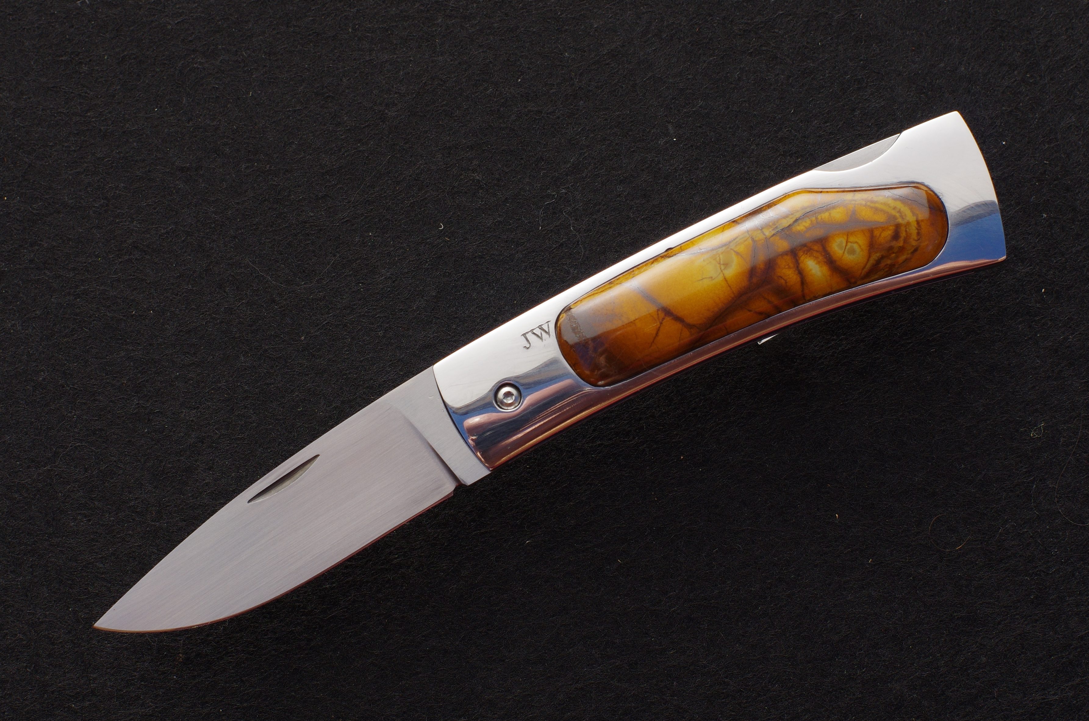 Ugly Knife 2.0 in coral tree. 1084 carbon steel. SoldIrish Chef in green waste. CPM154. Sold.Irish Chef in Cypress. CPM154. Sold.Clip Point Chef in plum tree. CPM154Half Chef in rotten Casurina. CPM154. SoldHalf Chef in curly jarrah. CPM154. SoldMorgan’s Off Cut in wattle. 1095 carbon Steel.Small utility in Huon pine. RWL34.Small utility in sheoak. RWL34. SoldLeon Interframe folder with picture jasper inlays. CPM154 blade and springs.Number 7 interframe folder with lapis inlays. 440C blade and springs. Sold.Number 7 interframe folder with tiger iron inlays. 440C blade and springs. Sold.Number 2 interframe folder with picture jasper inlays. 440C blade and springs. Sold.Number 2 interframe folder with actinolite jade inlays. 440C blade and springs. Sold.Ellen Folder. CPM154 blade and spring, pink stabilised wood scales with pink abalone inlays.Ugly Knife 2.0. 1084 blade in a stabilised European White Ash handle. Sold.Owens Nakiri in Avocado. 80CrV2 Carbon SteelUgly Knife in European White Ash. 1084 Carbon Steel. SoldJasper Camper in rotten Casurina. 1084 Carbon SteelJasper Camper in Wattle. 1084 Carbon SteelHalf Chef in Wattle. 80CrV2 Carbon Steel.Half Chef in Huon Pine. 80CrV2 Carbon Steel.Croot Folder in Plum tree. 80CrV2 carbon steel blade and spring.Croot Folder in Wattle. 80CrV2 carbon steel blade and spring. Sold